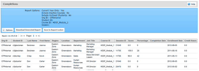 You can create just the report you want with CourseMill's custom reports. Generate reports based on predefined database views, custom database queries, or external scripts. This section will most likely require the expertise of your IT department.