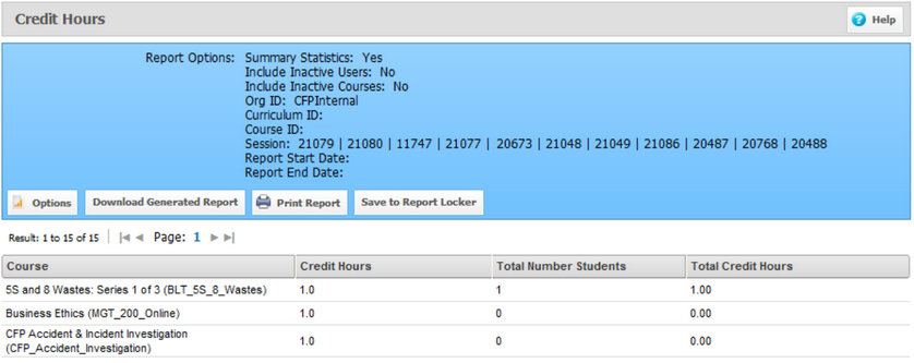 The Credit Hours selection provides the ability to select one, or more level options (student, curriculum, course, and/or sessions) to narrow the report down to your specific needs.