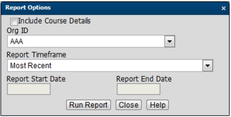 Select your organization, and if you want to narrow your search by Student ID, Course ID, or Session, and/or