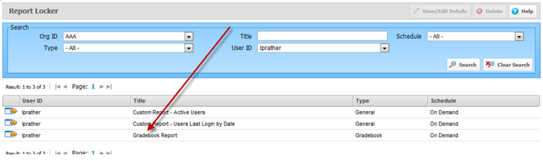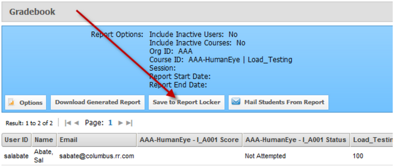 When you select Save to Report Locker, it will bring up your current report locker and add your selected report to the bottom of the list and will label it the same name as the report you ran. In this example above, we selected Save to Report Locker when we were running the Gradebook Report. Thus when it was saved to the report locker area, it was initially saved to the same name.