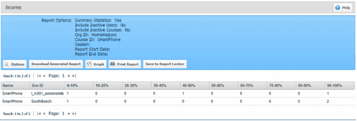 The Scores report provides information such as scores that were recorded for each course. Using this report, you can quickly view each student’s individual scores on specific courses.