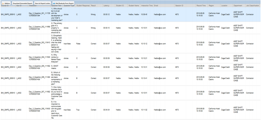 Requires that test-question interactions are included (SCORM or AICC) when courses are published. Lectora will provide these using the Publish to CourseMill option. |