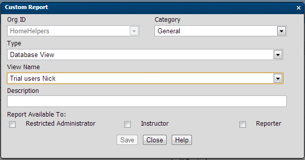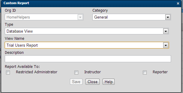 As you click View/Edit Details of any of the General Reports – you will see a screen similar to the following. This screen allows the administrator to select which group of users can have access to that particular report.