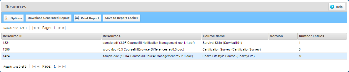 Provides a list of resources that have been set up in the Resources section of Course Content for all courses within an organization or the organization resources. If you run it in detail it will show you every student who has accessed it.