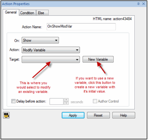 To see all the variables in your title, select Tools>Variable Manager. Reserved variables are ones that are automatically created for you, i.e. entry fields, test questions, etc. User-Defined variables are variables that you create with an initial value and modify them with actions, as seen above.