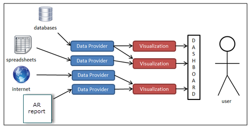 如果你开始创建一个新的仪表板,你应该已经有你需要获得什么数据的想法,希望如何显示这些数据。仪表盘基本上是数据提供者和可视化的集合。数据提供商捕捉各种不同环境的信息。数据提供者可以从数据库,互联网,高级报告报告,或任何其他地方返回的数据。当一个数据提供者已捕获的信息,它能够这个数据提供给一个或多个不同的可视化。当您添加了从数据提供商中提取数据的可视化首先,你有一个可视仪表板!